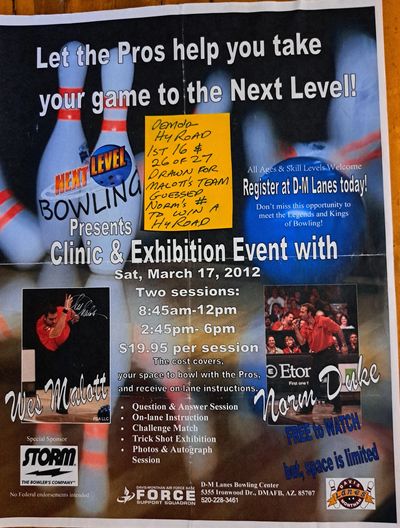 Norm Duke had 3 clinics on base. The last is when I won a ball I used to win the Senior Masters