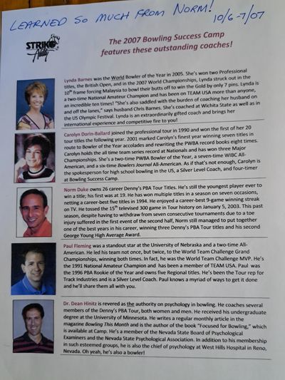Norm Duke was a coach at Suzzie's Bowling Camp in Dallas. Learned a lot from Norm that weekend.